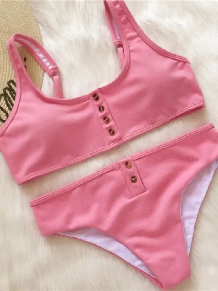 This sporty bikini set is designed for comfort and style. The wire-free support and low waist provide a flattering fit, while the solid pattern and padded cups offer a sleek and modern look. Perfect for a day at the beach or pool, this bikini set is sure to turn heads. This bikini set is crafted from a blend of polyester and spandex, ensuring a comfortable and durable fit. This bikini set is perfect for a day at the beach, poolside lounging, or any other water-based activity.