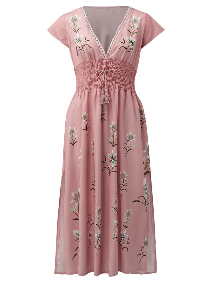 Beach Style Boho V-Neck A-Line Mid-Calf Sleeveless Polyester Knit Printed Dress