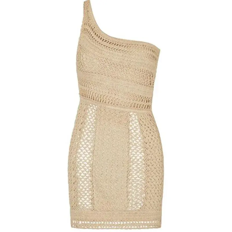 Beach Crochet Mini Dress Fishnet Cover Up Sheer Vestido Swimwear
