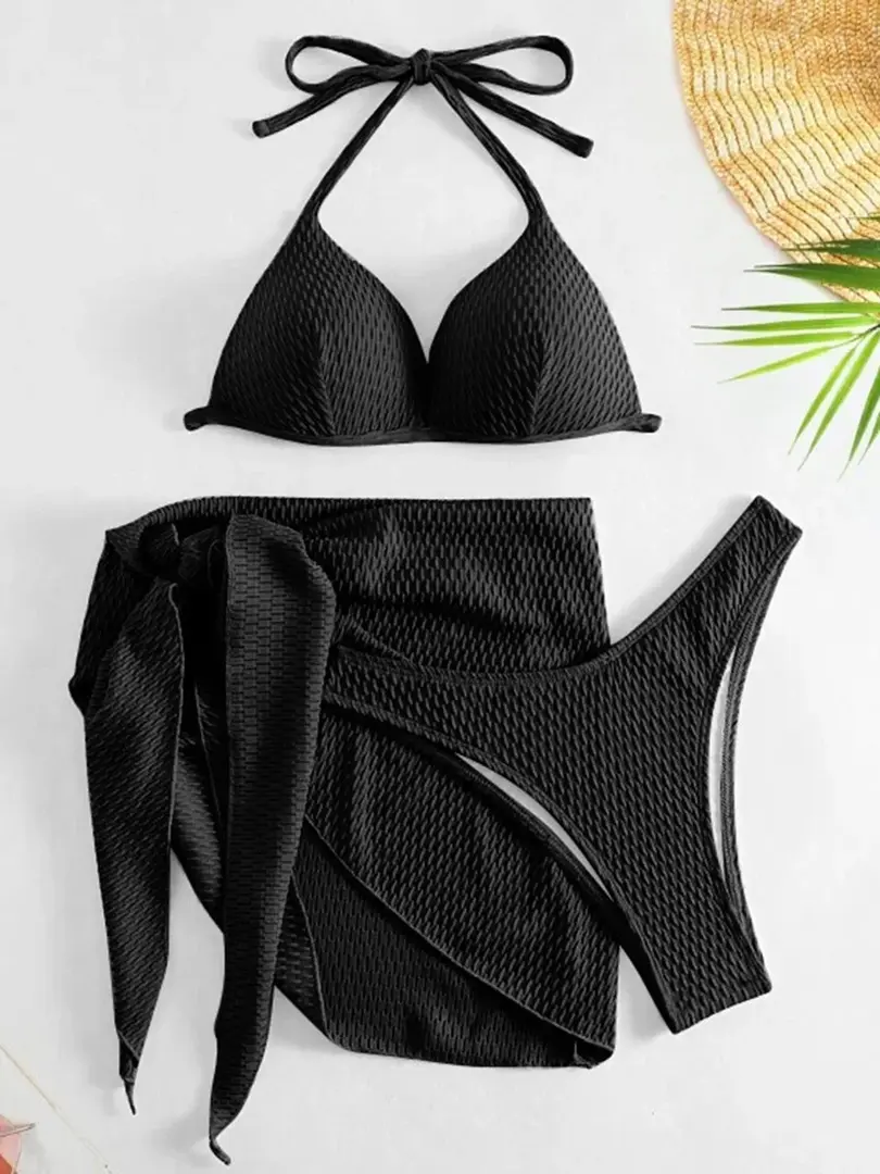 Material:This bikini is crafted from a blend of polyester and spandex, ensuring both durability and stretch for a comfortable fit.