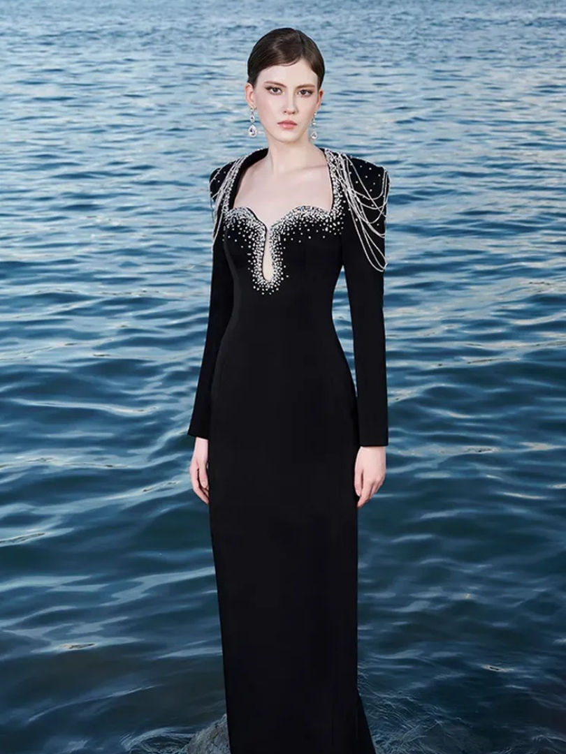 Custom-made Evening Dresses, A-LINE Sequin Silk, Graduation Dress Black