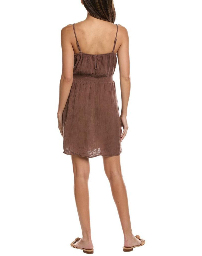 Smocked Waist Mini Dress Appliques Batwing Sleeve Bow Neck High Stretch Polyeste