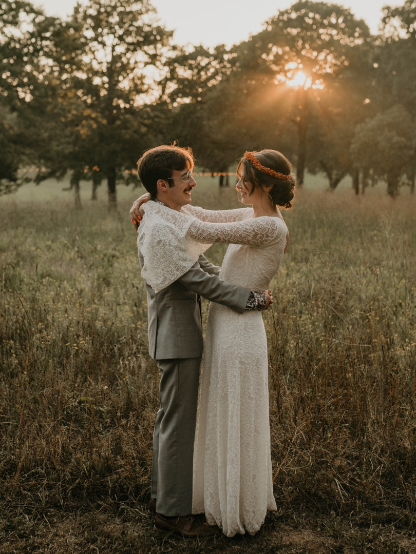 Imagine walking down the aisle in this ivory gown, the lace bodice catching the light with every step. The bell sleeves add a touch of drama, flowing gracefully as you move. It's a dress designed for a moment you'll never forget.