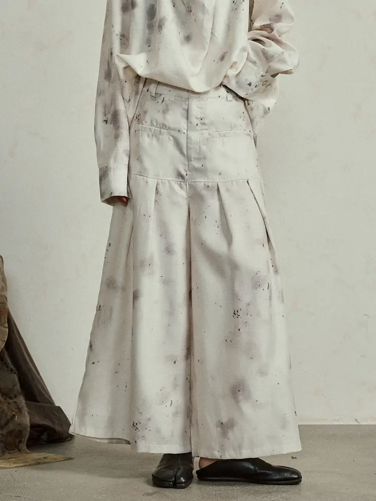 Big Size Printed Shirt Wide Leg Pants Two Piece Suit New Stand Collar Long