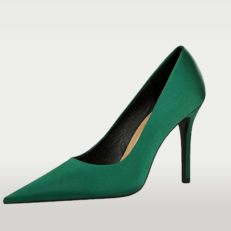 silk high heel pumps, pointed toe stiletto heels, women's luxury party shoes, elegant evening pumps, sexy silhouette heels, leg elongating stilettos, slip on high heels, handcrafted silk heels, special occasion footwear women, red carpet ready pumps, nightclub stiletto heels, glamorous dress shoes, thin heel silk pumps, statement party heels