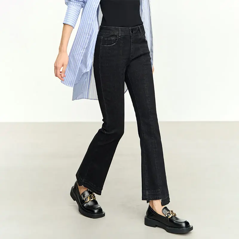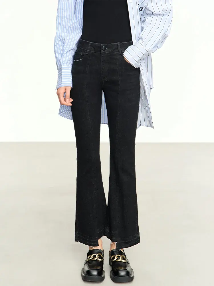 Black Asymmetric Slim Ankle Jeans Autumn Fashion