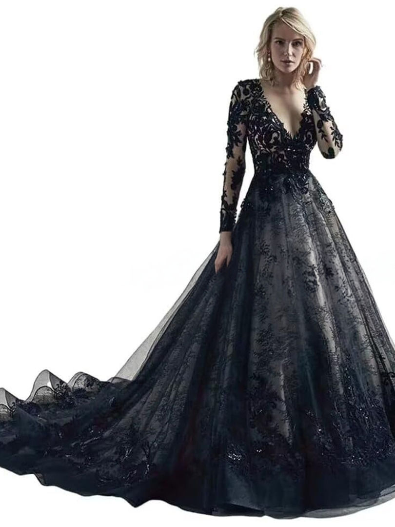 Tags:black long sleeve evening dress, v neck tulle formal gown, lace applique evening dress, floor length evening gown with sleeves, elegant black wedding guest dress, plus size black evening dress, formal dress with sweep train, affordable black evening gown, classic evening dress for women, long sleeve formal dress for wedding, black tie event dress, a-line evening dress with lace, custom size evening dress, black evening dress with built-in bra.