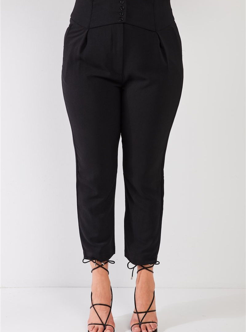 Black High-Waisted Pegged Pants Pleated Top Button-Down Zipper Work Wear