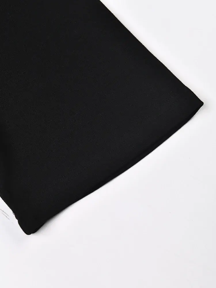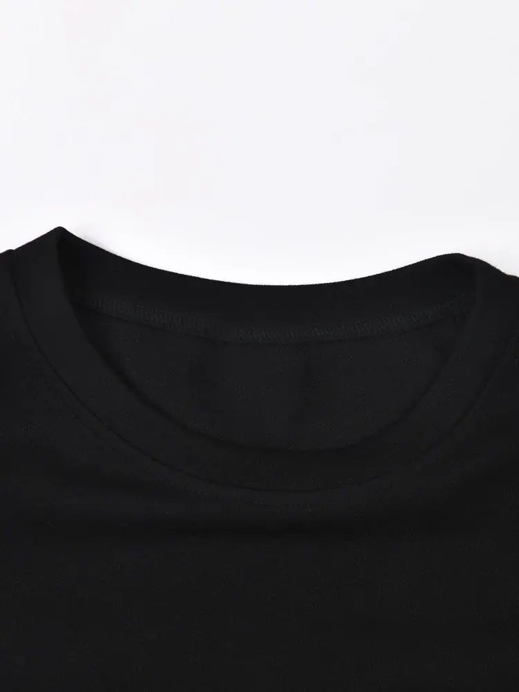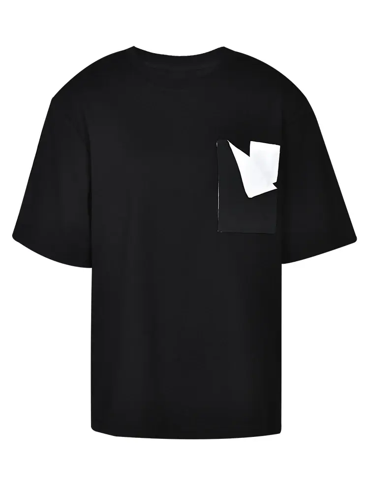 - Add a touch of trendy style to your warm-weather wardrobe with unique O-neck patchwork tee in black. Made from a breathable jersey fabric (cotton-poly blend) with a slight stretch for added comfort, this tee offers a flattering fit for any middle-aged figure. The classic O-neck design is accented with stylish patchwork details, creating a modern and eye-catching look. Perfect for spring and summer, this black patchwork tee is sure to become a favorite.