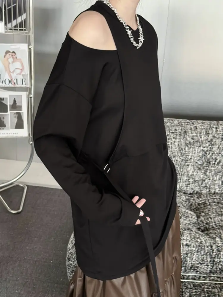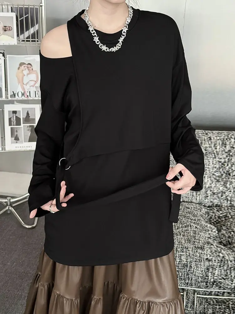 This comfy black tee features a unique cutout detail for a touch of modern style. Made from a breathable cotton-polyester blend with a slight stretch, it's versatile for any season. The relaxed fit flatters most body types, and the classic O-neck collar adds a casual touch.