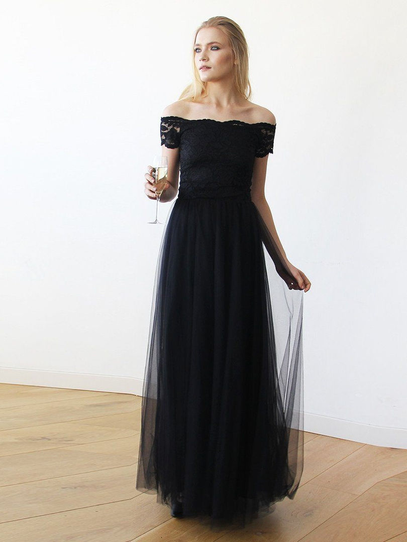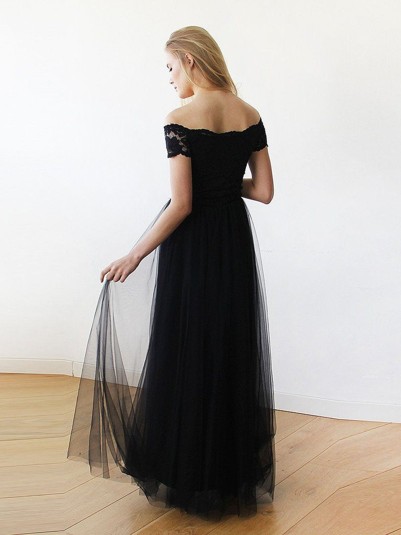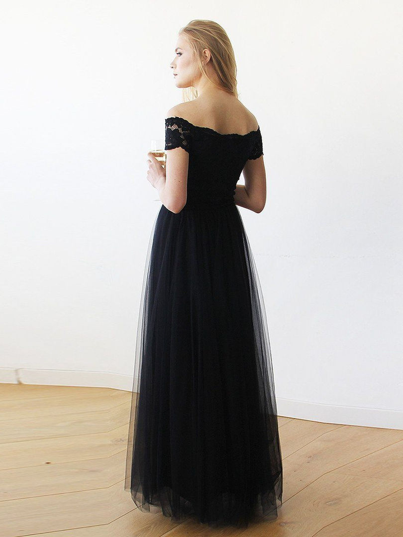 Trendy and affordable spring-summer bridal gown. Off-the-shoulder style made with floral lace and tulle for the skirt. A lightweight floral lace design, short sleeves, and a gentle Black color. This is the most trendy and stylish wedding gown for your big day!