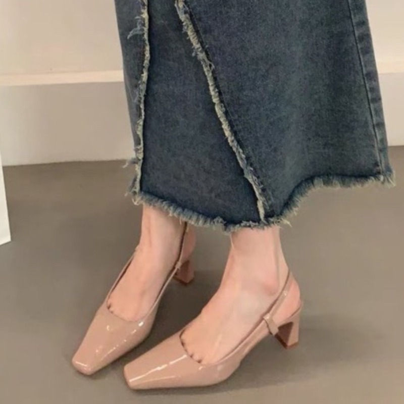 Square Toe Block Heel Sandals, Ankle Strap High Heels, Formal Party Wear