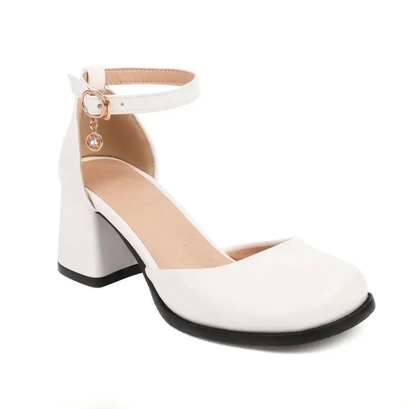These chic ankle strap sandals elevate your look with a touch of sweetness and a confident stride. The open side vamp design adds a modern touch, while the high square heel provides a flattering lift.