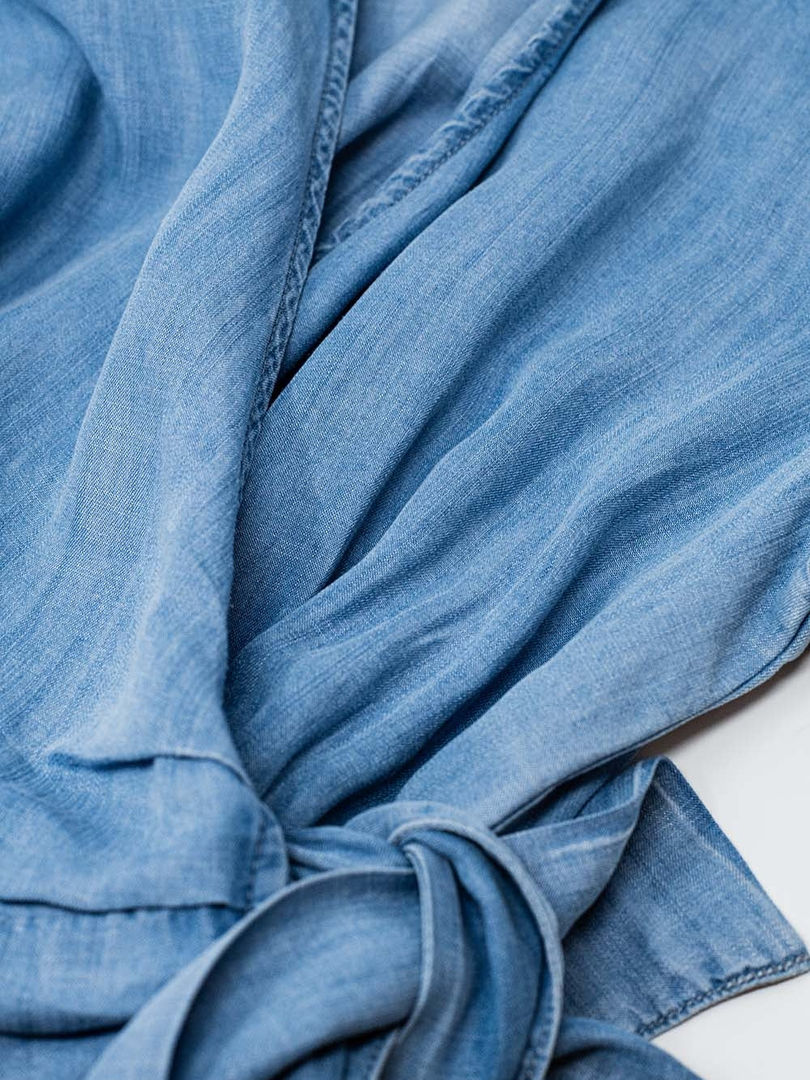 Blue Tencel Denim Wrap Front Jumpsuit