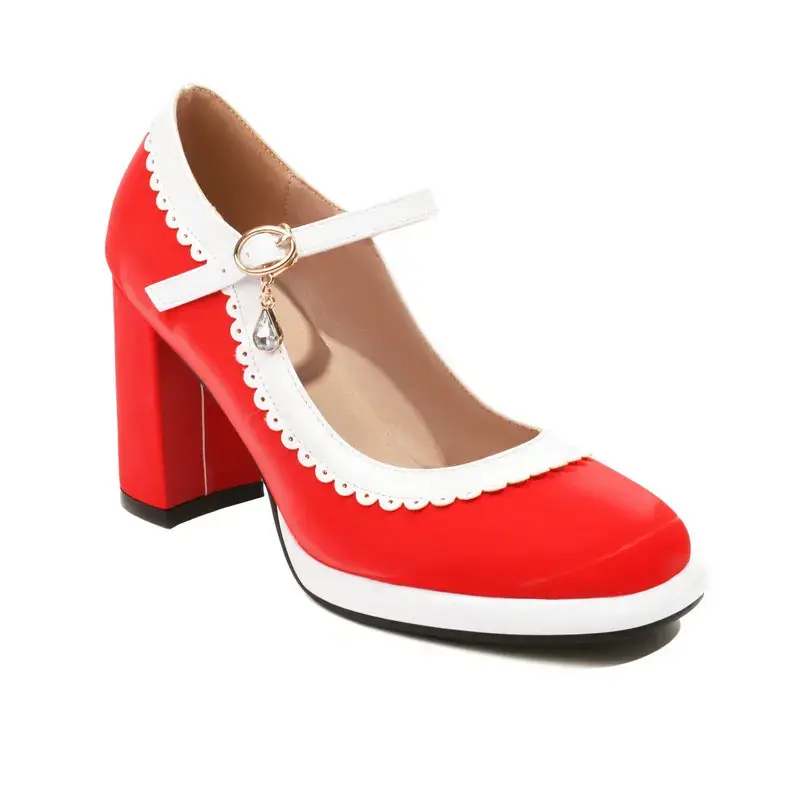 These stylish pumps effortlessly elevate any outfit with their classic Mary Jane design and modern platform sole. The round-toe silhouette and secure buckle strap closure ensure a comfortable and flattering fit.