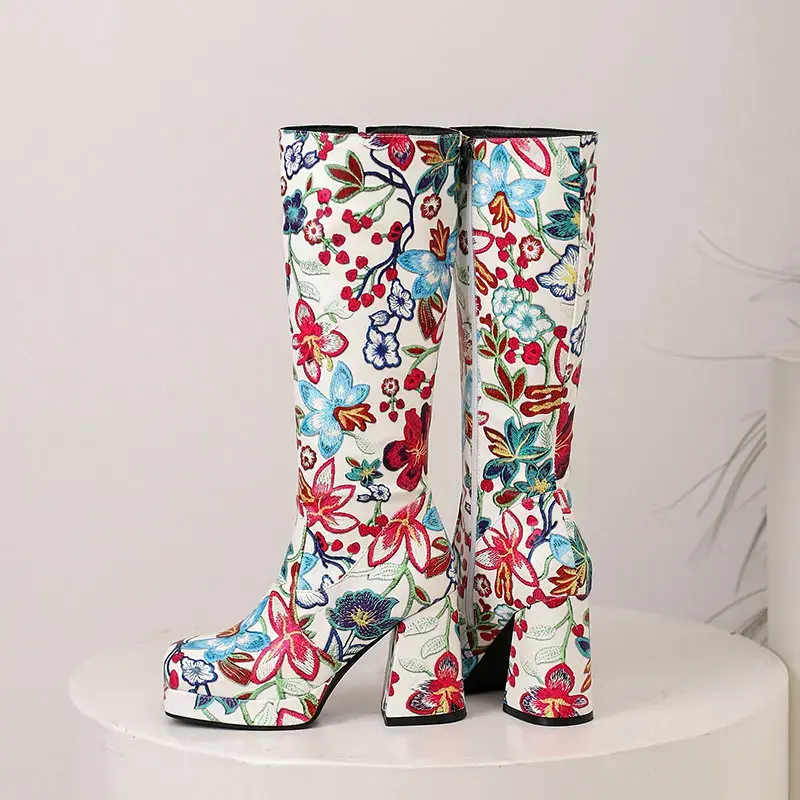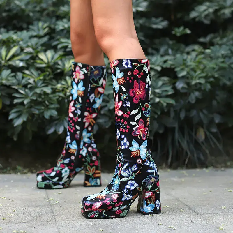 These stunning stretch boots effortlessly fuse fashion and comfort, making them a versatile addition to your footwear collection. The knee-high design and square toe exude a chic and modern appeal, while the floral pattern adds a touch of boho charm.