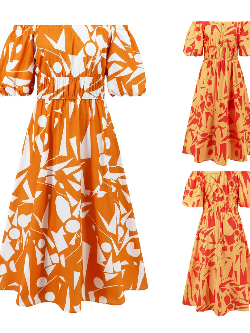 floral print knee length dress, A line summer dress, slash neck short sleeve dress, casual pullover dress women, cotton blend print dress, bohemian style summer dress, easy wear floral dress, spring summer knee length dress, comfortable A line dress, everyday print dress, stylish casual dress, short sleeve A line dress, natural waist print dress, relaxed fit summer dress