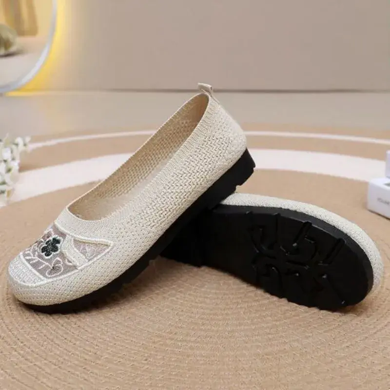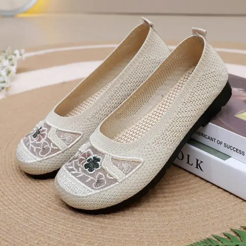 Breathable Mesh Loafers | Embroidered Round Toe Slip On Flats | Lightweight