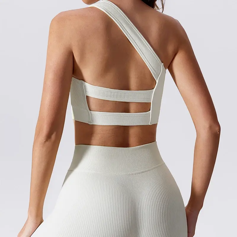 Breathable One Shoulder Cut Out Back Sports Bra - Running & Yoga