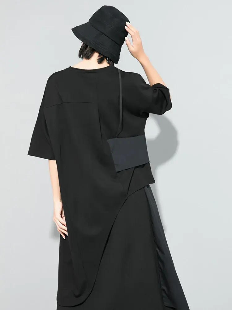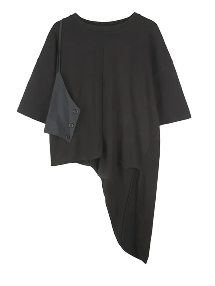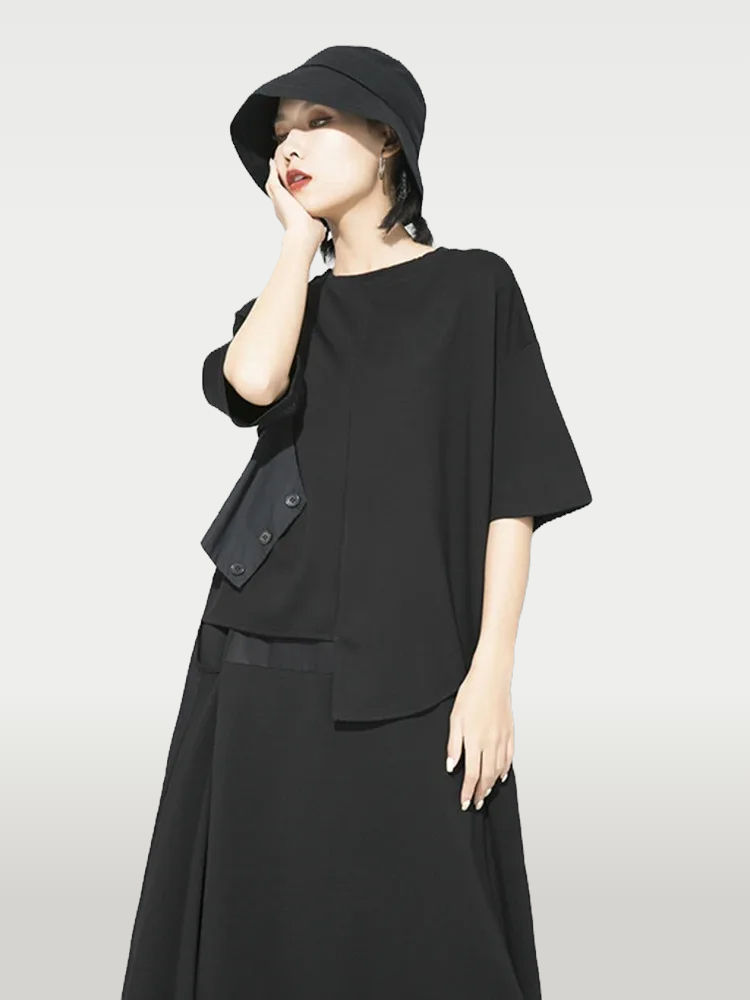 Beat the heat in style with this comfy black jersey tee (cotton or cotton blend)! The classic crewneck and relaxed fit offer everyday ease, while the breathable fabric with a hint of stretch keeps you cool. This versatile tee pairs effortlessly with various looks and is perfect on its own or layered for all-season style! (138 characters)