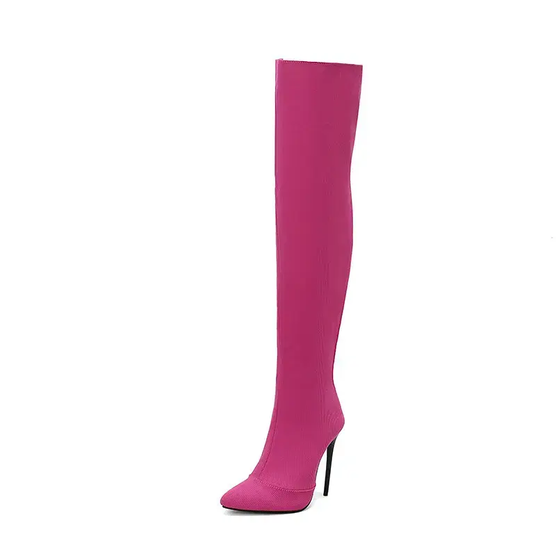 Bright Green Pink Overknee Boots Pointed Toe Super Thin High Heels