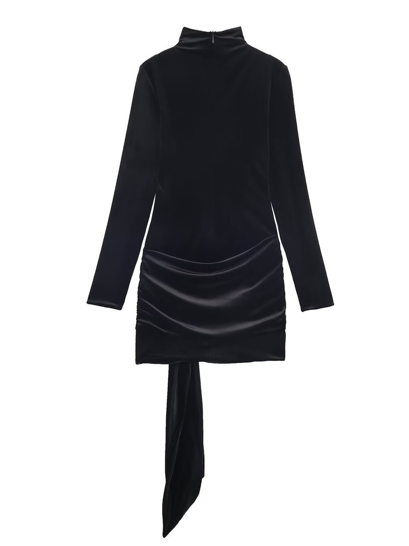 Tags: long sleeve velvet mini dress, turtleneck short dress for women, A-line velvet dress with belt, autumn office lady dress, winter work dresses for women, solid color velvet party dress, back zipper turtleneck dress, empire waist mini dress long sleeve, business casual velvet dress, women's autumn fashion dress, cold weather short dress with sleeves, sophisticated holiday party dress, belted turtleneck dress for work, regular fit A-line dress