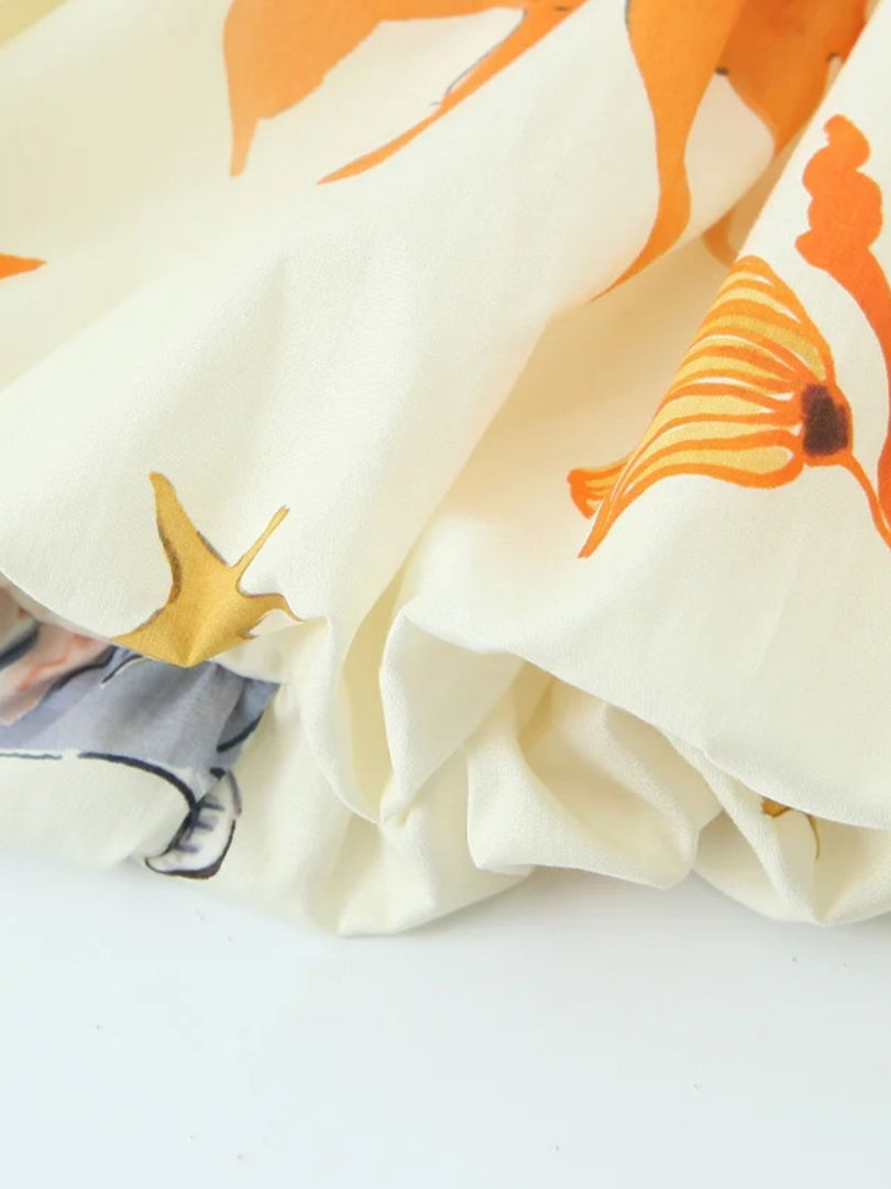 Printed A-Line Mini Dress, Sleeveless Spaghetti Strap, Backless Empire Waist