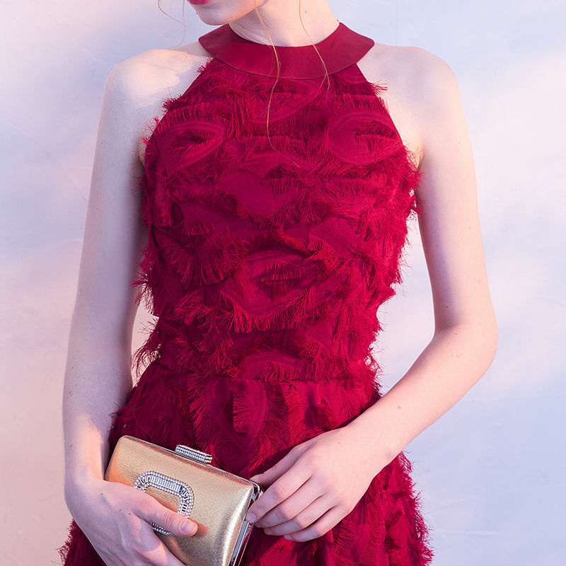 Tags:Burgundy lace evening dress, floor length formal gown, elegant prom dress, sleeveless evening gown, high neckline evening dress, empire waist evening dress, lace detail formal dress, long burgundy prom dress, sexy lace evening dress, feather detail evening dress, formal party dress, built in bra evening dress, all age evening dress, plus size burgundy evening dress.