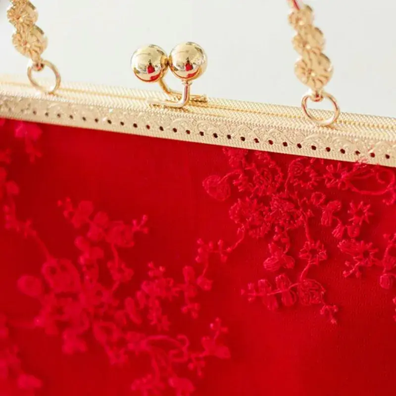 Canvas Lace Evening Bag Clutch Wedding Party Handbag Vintage Red