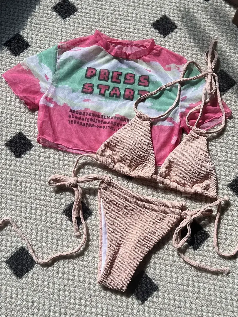 This bikini set is perfect for women who want a comfortable and stylish swimsuit. It features a low waist and a wire-free design for maximum comfort. The print and letter pattern adds a touch of personality, while the padded cups provide extra support. This bikini set is made from polyester and spandex, making it both durable and comfortable to wear. This bikini set is perfect for a day at the beach, poolside lounging, or any other summer activity.