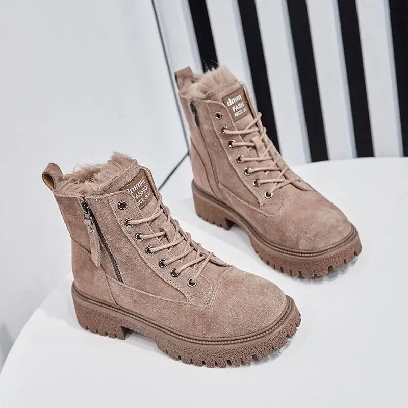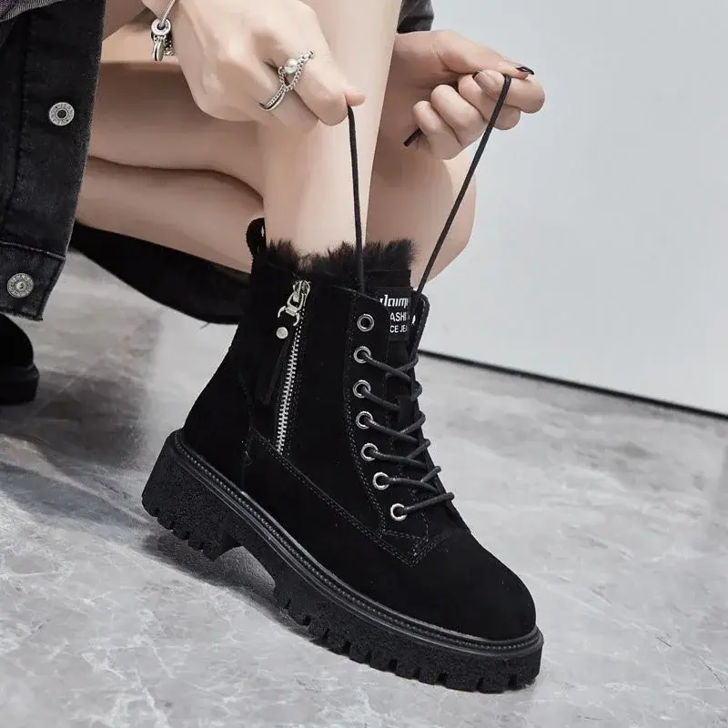 Cashmere Boots British Style Thick Sole Mid-Calf Trendy New