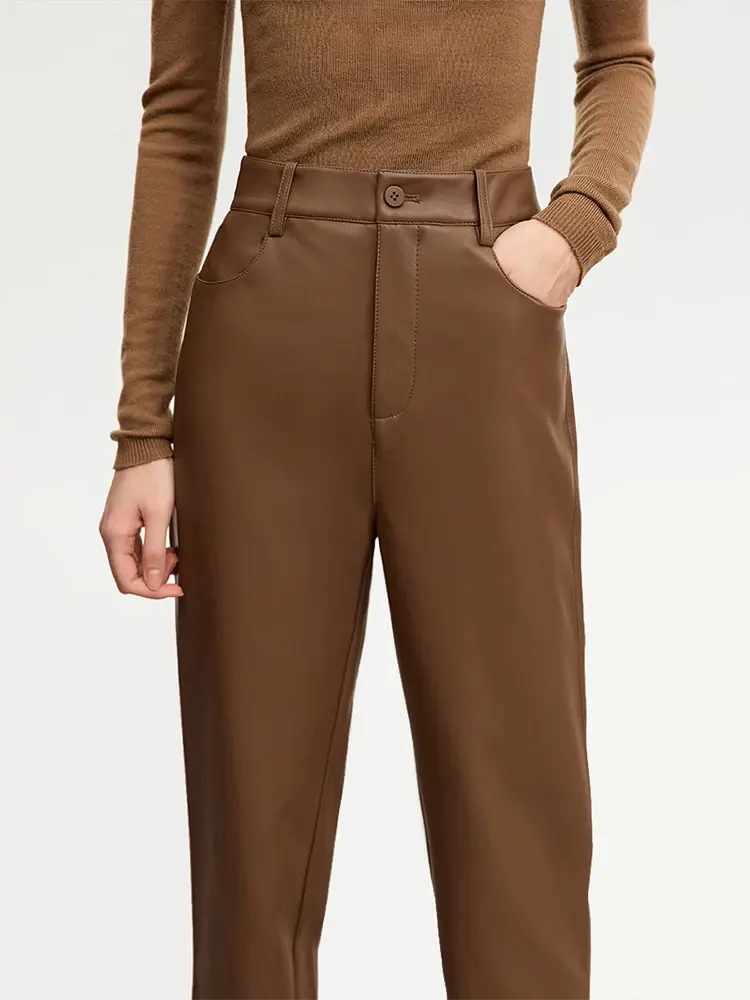 Casual Ankle Length PU Leather Pants Winter Fashion Trend
