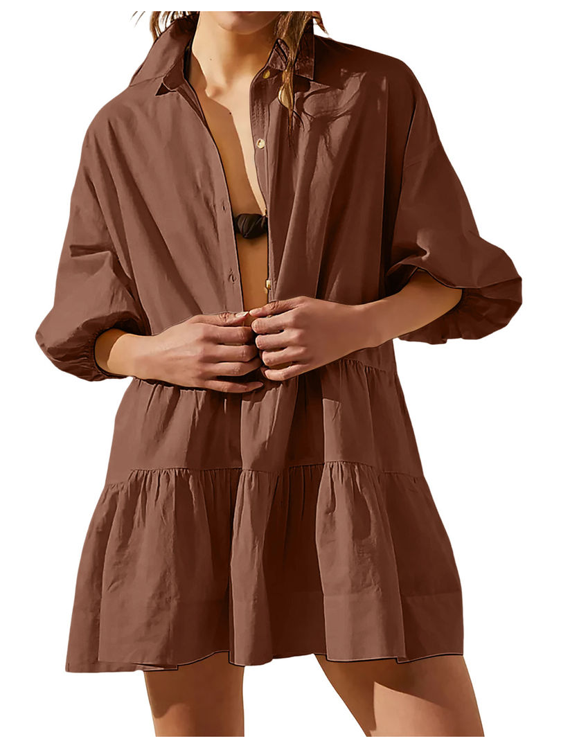 Casual Sleeveless O-Neck Button Down Shirt Polyester A-Line Knee-Length Dress