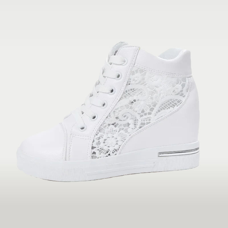 Casual Wedge Shoes Breathable Lace Fretwork Detail