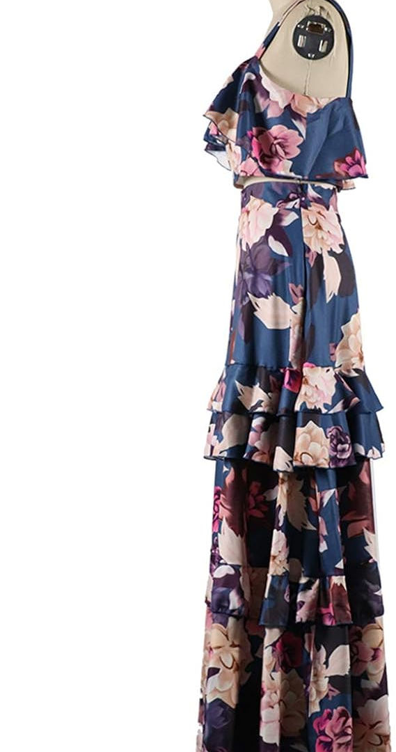 This is a casual mini dress designed for easy wear in warmer seasons. It features a slash neckline, soft ruffle details on the sleeves, and a tiered skirt section. The fabric blend includes spandex for a comfortable, slightly stretchy fit.