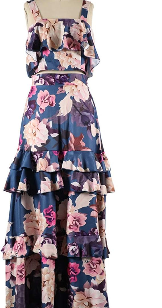 Solid Color Two Piece Set Crop Top Mini Skirt Slash Neck Ruffle Sleeve Tierred
