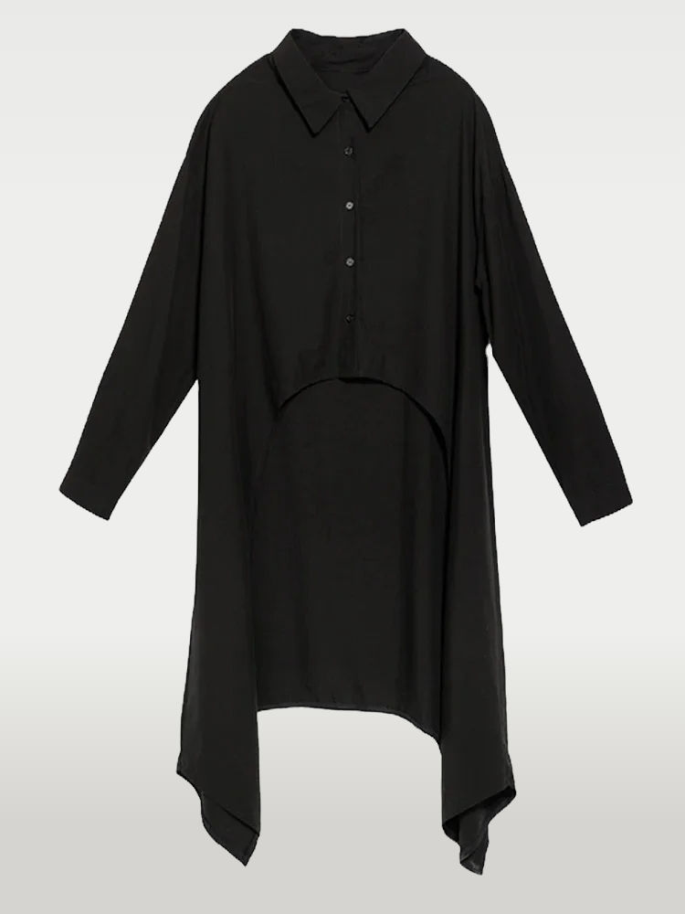The timeless design features a turn-down collar for a polished look and a single-breasted closure for easy wear. This sleek black shirt is a must-have for any wardrobe, offering endless outfit possibilities all year round.