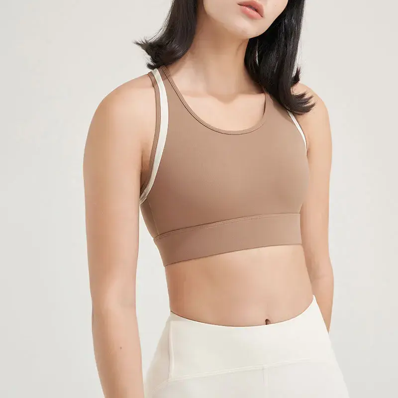 Color Contrast Sports Bra | U-Neck | Fixed Cup | Yoga | Activewear