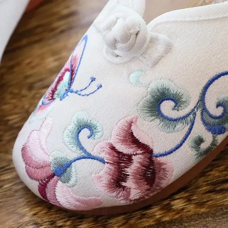 Cotton Fabric Embroidered Ethnic Slippers - Summer Shoes
