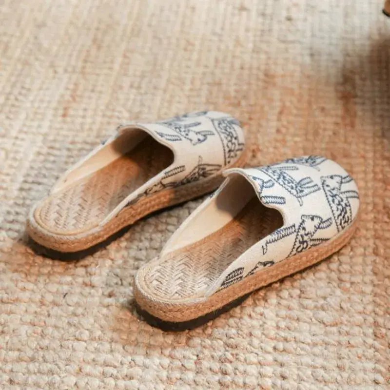 Cotton Fabric Slides | Casual Open Toe Slippers | Adjustable Buckle Closure