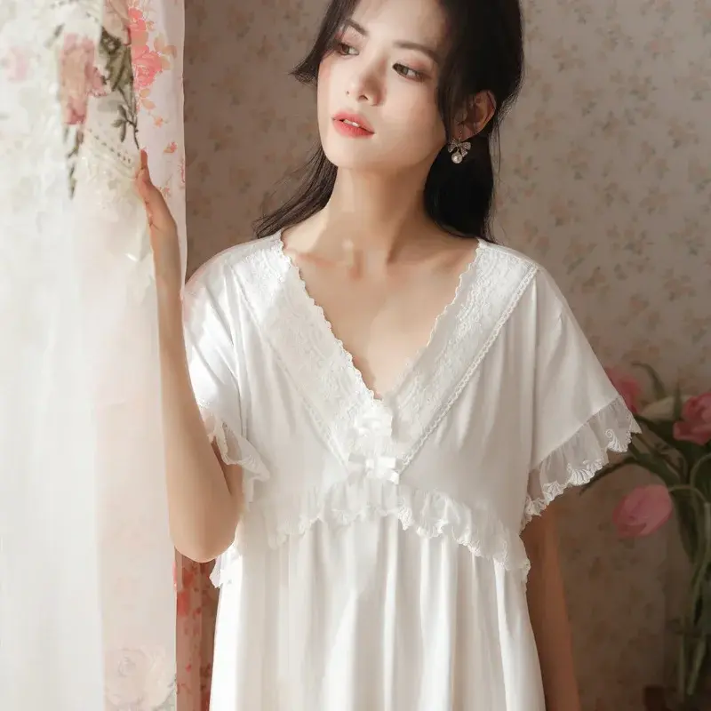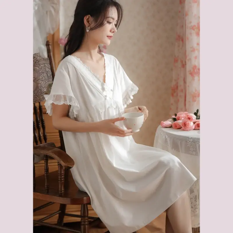 Cotton Lace Short Sleeve Nightgown Sleepwear Loungewear