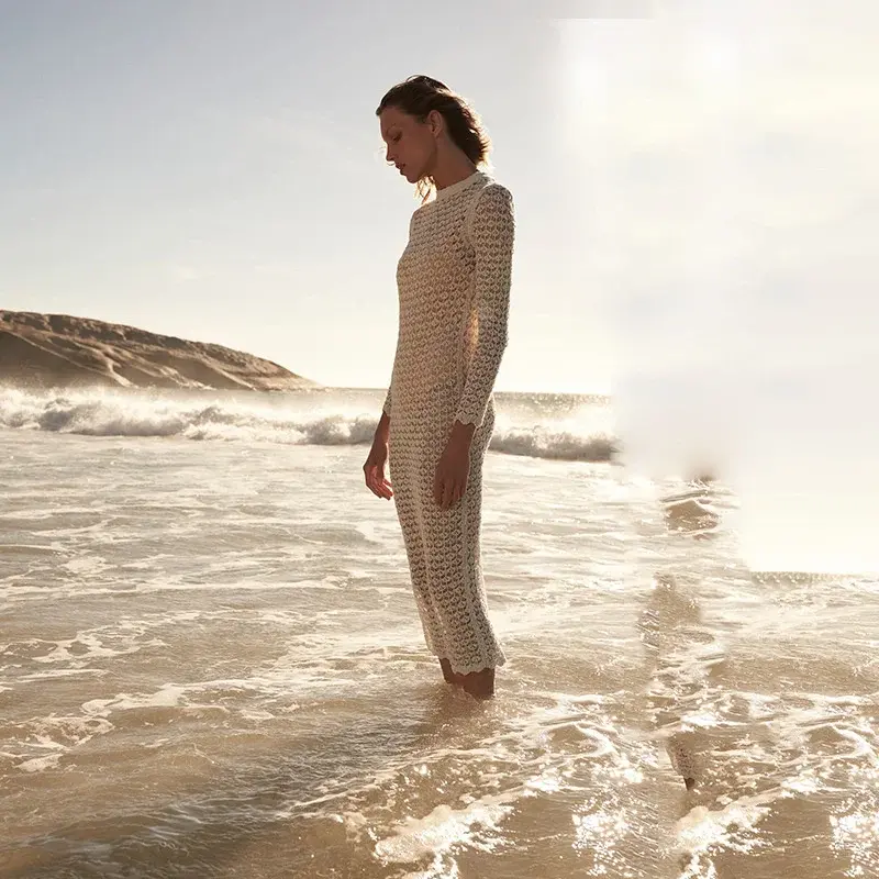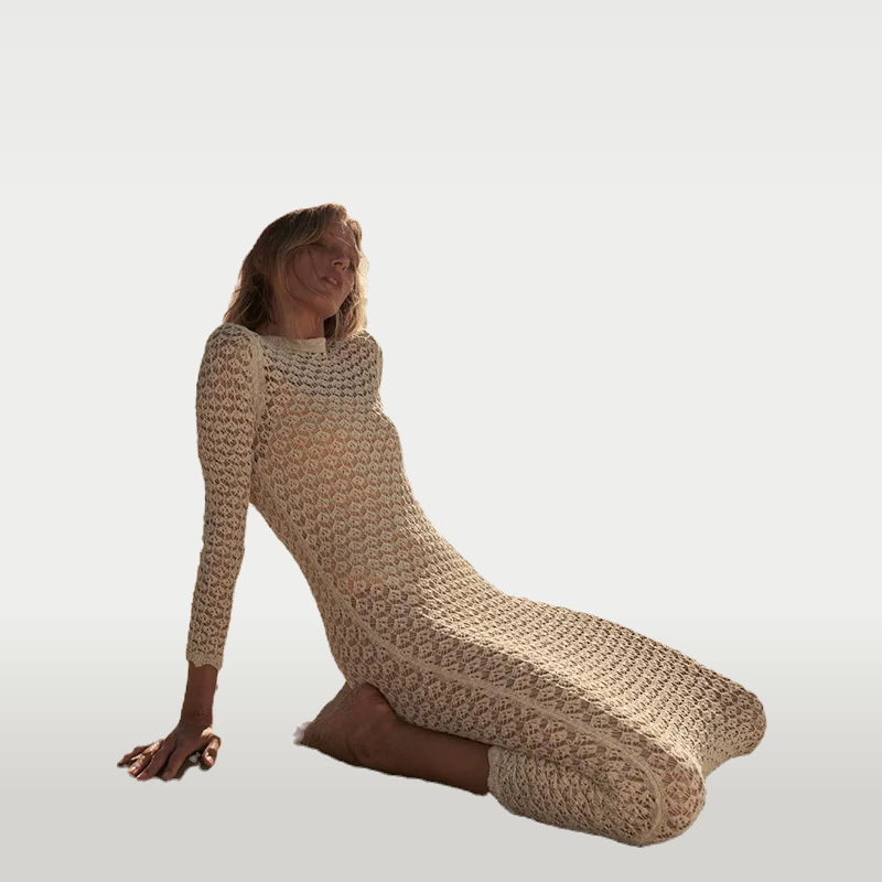 Crochet Beach Cover Up Long Sleeve Sheer Hollow Tunic Swimsuit