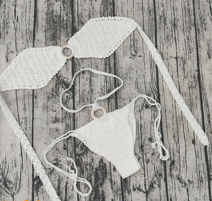 Crochet Bikini Set, Knitted Swimsuit, Off Shoulder Crop Top & Shorts