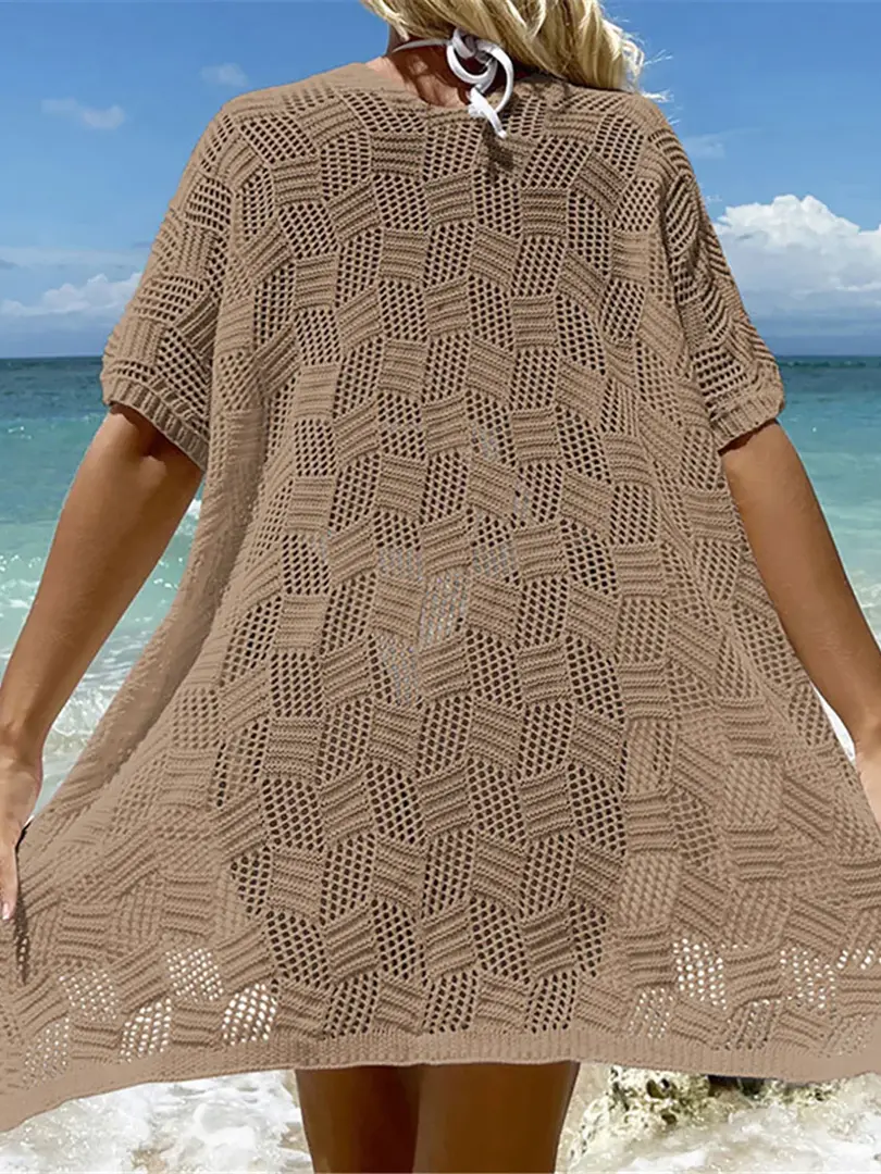 Crochet Knitted Tunic Beach Cover Up Short Sleeve Hollow Out