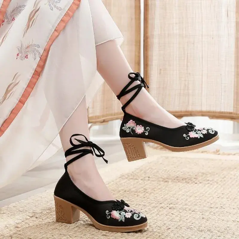 Materials: Crafted with high-quality cotton fabric uppers, durable cow muscle outsoles, and comfortable hemp insoles, these pumps ensure both style and comfort.