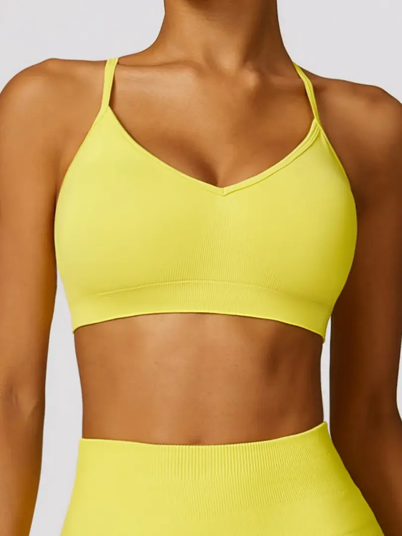 Cross Strap Sports Bra | Seamless Push Up Crop Top | Gym Yoga Workout
