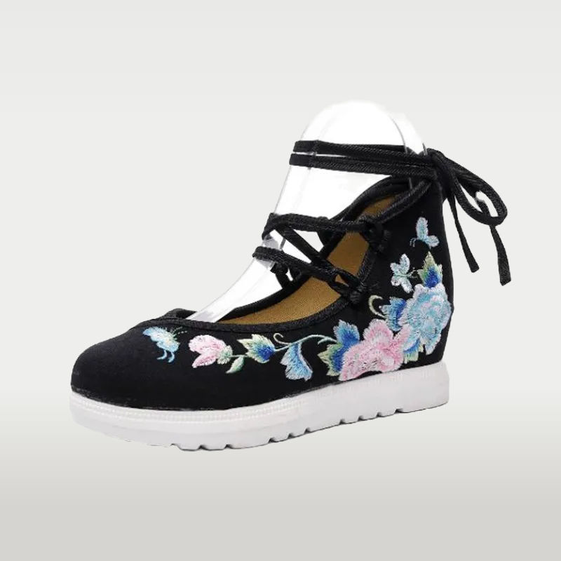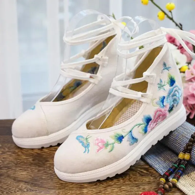 Cross-Tied Embroidered Canvas Sneakers Casual Vintage Shoes
