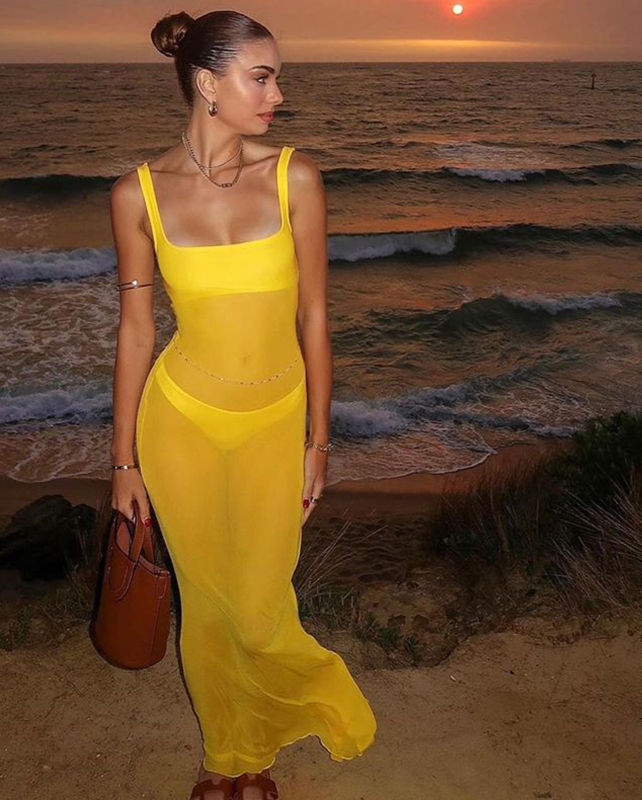 Tags: Sleeveless bodycon midi dress, square neck cocktail dress, spaghetti strap summer dress, mesh see through maxi dress, backless party dress women, slim fit knit dress, high stretch bodycon dress, sexy club dress women, holiday party dress women, knee length bodycon dress, solid pattern summer dress, women's sleeveless sheath dress, summer date night dress, trendy mesh panel dress.