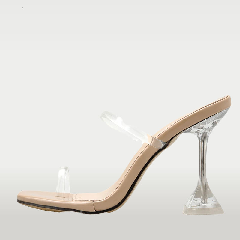 These Crystal Slide Sandals are designed for your summer outings. With a super high heel (over 8cm) and a distinctive crystal embellishment, they offer a noticeable touch of sparkle. The platform (between 0-3cm) is there for a more balanced feel, while the PVC upper keeps the look sleek for outdoor occasions.