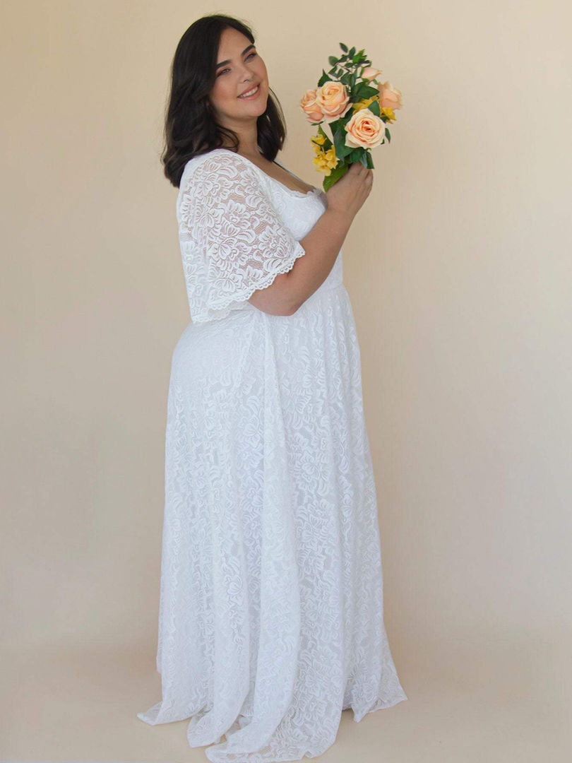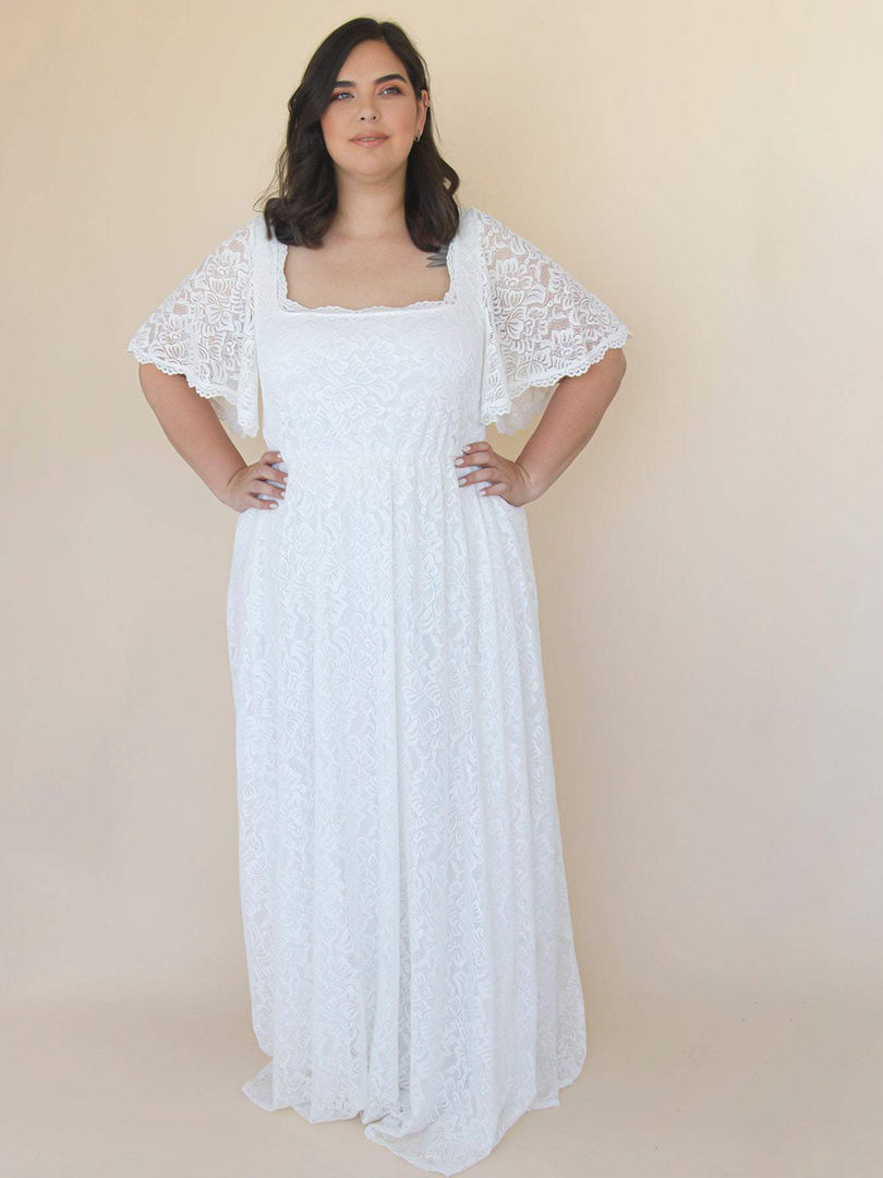 ivory square neck wedding dress, butterfly sleeve bridal gown, floor length lace wedding dress, comfortable stretch wedding dress, plus size ivory wedding dress, simple elegant wedding dress, affordable lace bridal gown, wedding dress with sleeves, modest square neckline dress, ivory wedding dress for outdoor wedding, bridal dress with elastic waist, wedding dress for summer wedding, lace wedding dress with stretch lining, ivory bridal gown for courthouse wedding
